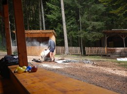 Es wurde nicht nur aufgebaut sondern auch die Messe für unseren Frühschoppen wurde vorbereitet, die jungen Aufbratler sorgten für ausgelassene Stimmung.