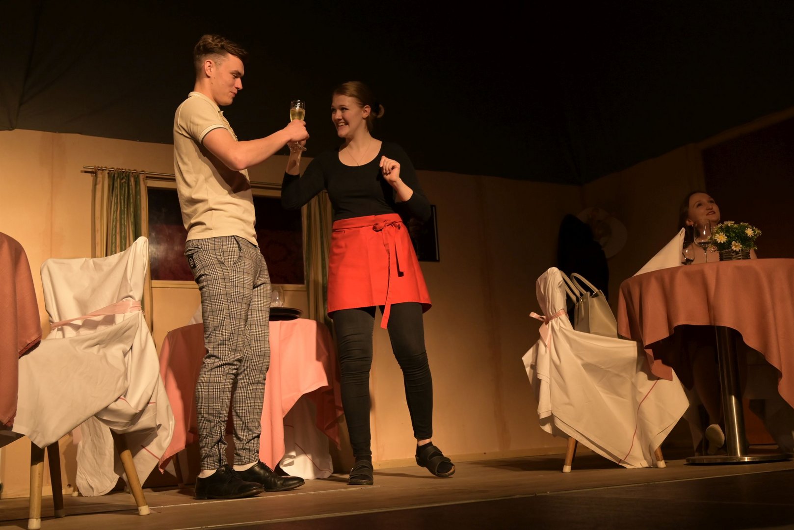 Unser Theater dieses Jahr war wieder ein voller Erfolg! Zahlreiche BesucherInnen genossen unsere vier Aufführungen des Stückes "Kaviar trifft Currywurst". Die Komödie der Edelgastronomie mit all den überraschenden Wendungen, einzigartigen Wendungen und lustige Witzen hat so manche Tränen lachen lassen.